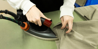 - 補正は、お客様からのご要望に沿ってボトムスの裾上げや、スカート、シャツ、ジャケットのサイズ調整を行う業務です。主な作業は、採寸、裁断、縫製、アイロンがけです。ECサイトの「サイズ直しサービス」を支える重要なポジションです。 使用する設備としては、本縫いミシン、ロックミシン、ルイスミシン、特殊ミシン(閂止め、ボタン付けなど)、アイロンなど多岐にわたります。