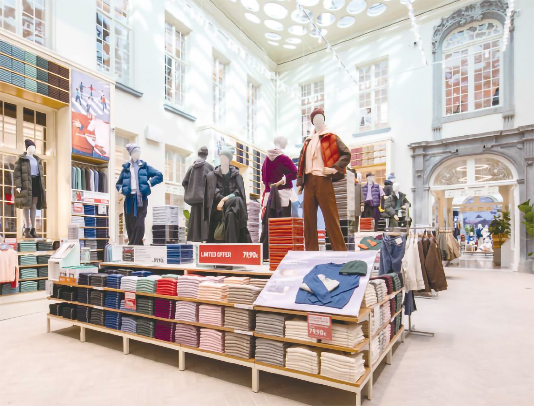 2025年9月、ベルギーのアントワープにオープンした「ユニクロ メイヤー店」はその代表的な店舗です。16世紀の歴史的建造物の繊細な意匠を残し、ユニクロのデザインを融合させた、伝統と現代が調和したエレガントな新しい旗艦店です。地元のアーティストやベーカリーなど、ローカル企業とのコラボレーションも展開し、お客様が店舗に入った瞬間、「ここは自分たちの店だ」と感じられる、生活に寄りそった店舗としてご好評を得ています。
