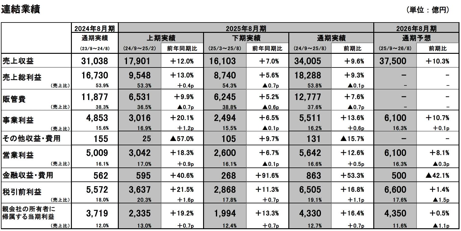 ■2025 年8月期の連結業績:4期連続で過去最高の業績を達成