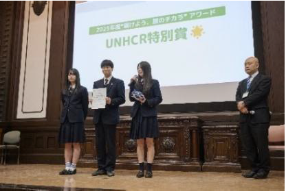 さらに、UNHCR特別賞には新潟県立村上桜ケ丘高等学校が選ばれ、審査員からは「"ヒーロー"という親しみやすく分かりやすいキャラクターを用い、工夫を凝らして次の世代にもメッセージを届けてくれました。非常に意義のある活動になっていたと思います。」とコメントがありました。